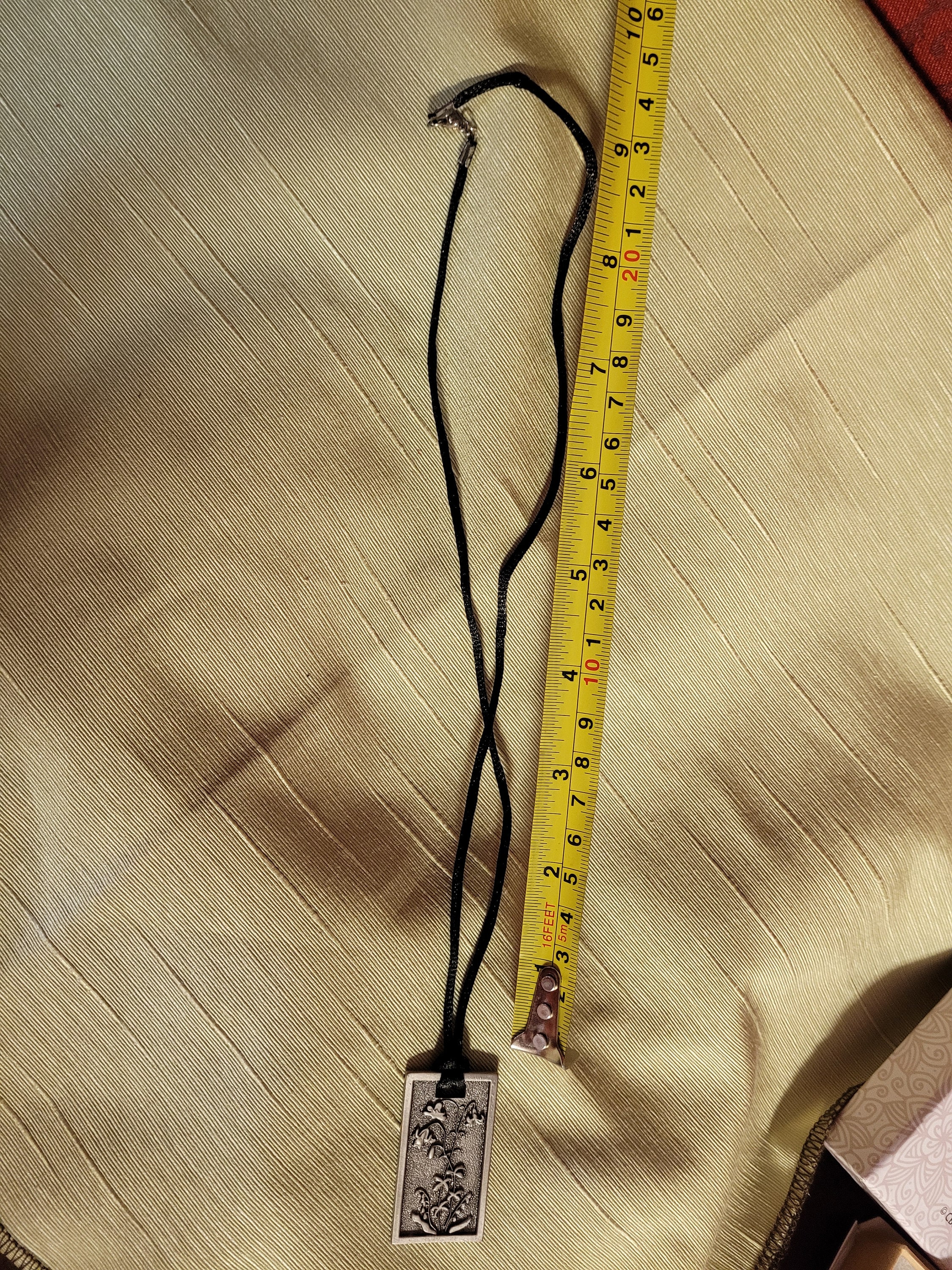 Beautiful Lilies of the field vertical silver pendant necklace. Matthew 6 33 Pendant is attached to a black cord.